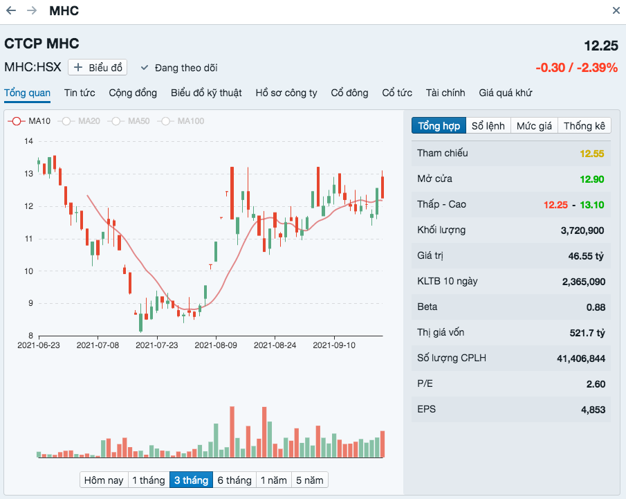 Căn cứ theo báo cáo tài chính sau soát xét 6 tháng đầu năm 2021, MHC lãi hơn 120 tỉ trên vốn chủ sở hữu hơn 400 tỉ, MHC giá 12.x là chưa tương xứng với giá trị của em nó. 18.x là mục tiêu đạt được trong quý 3