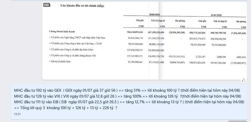 MHC liệu lời 400 tỷ quý 3.2025 ? Eps riêng quý 3 khoảng 10.000 ?