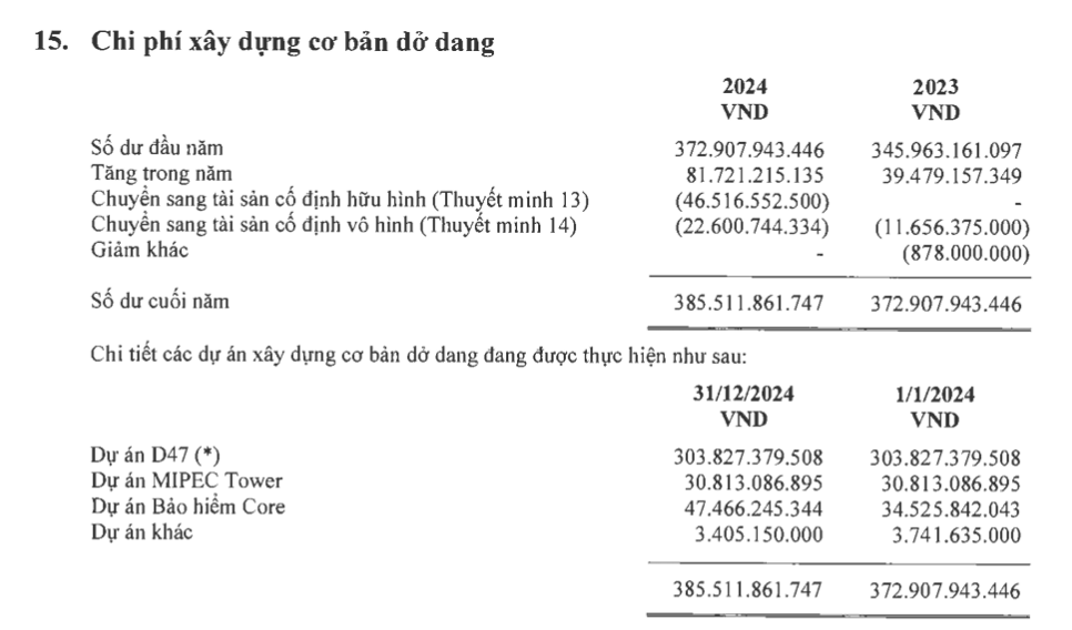 Hiện ghi nhận dưới mục “Chi phí xây dựng cơ bản dở dang dài hạn”.