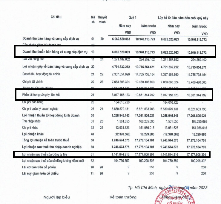 DRH Doanh thu q1 6 tỷ, lợi nhuận 1,1 tỷ nhờ khoản lãi từ cty liên kết tầm 3 tỷ nếu ko chắc chắn lỗ mấy quý liên tiếp