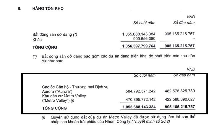 Doanh nghiệp có 2 dự án trọng điểm là trên BCTC là: