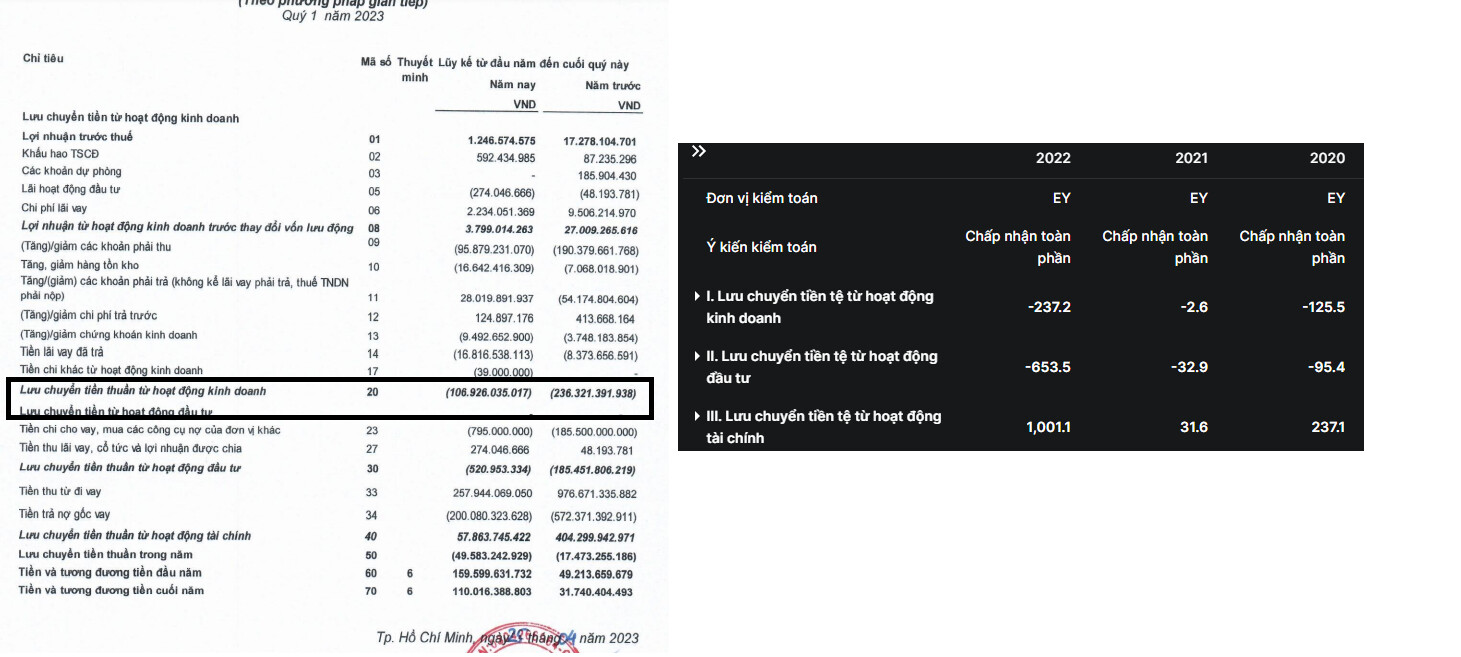 Lợi nhuận quá bé, dòng tiền âm nhiều năm nợ trái phiếu nợ cty chứng khoán.