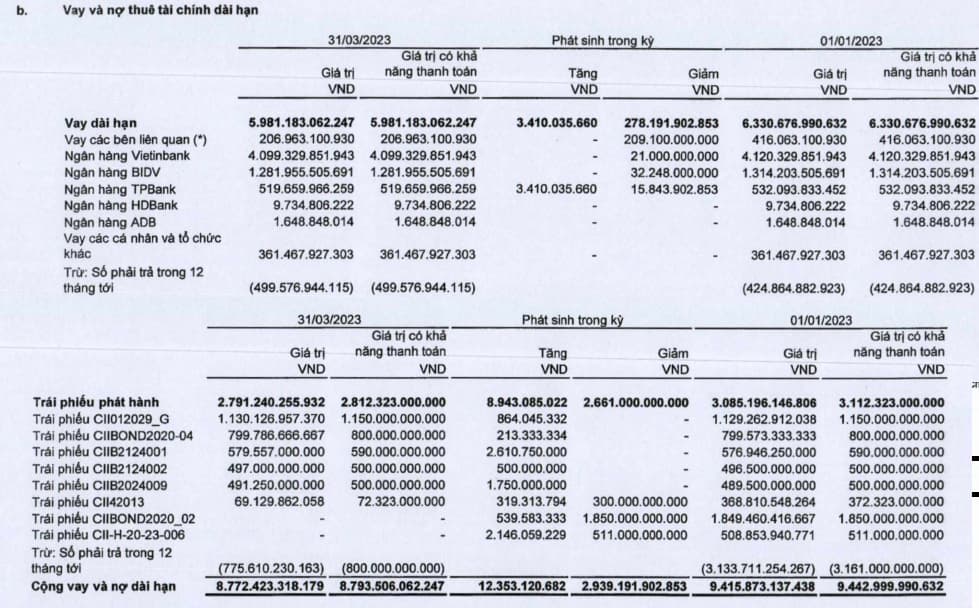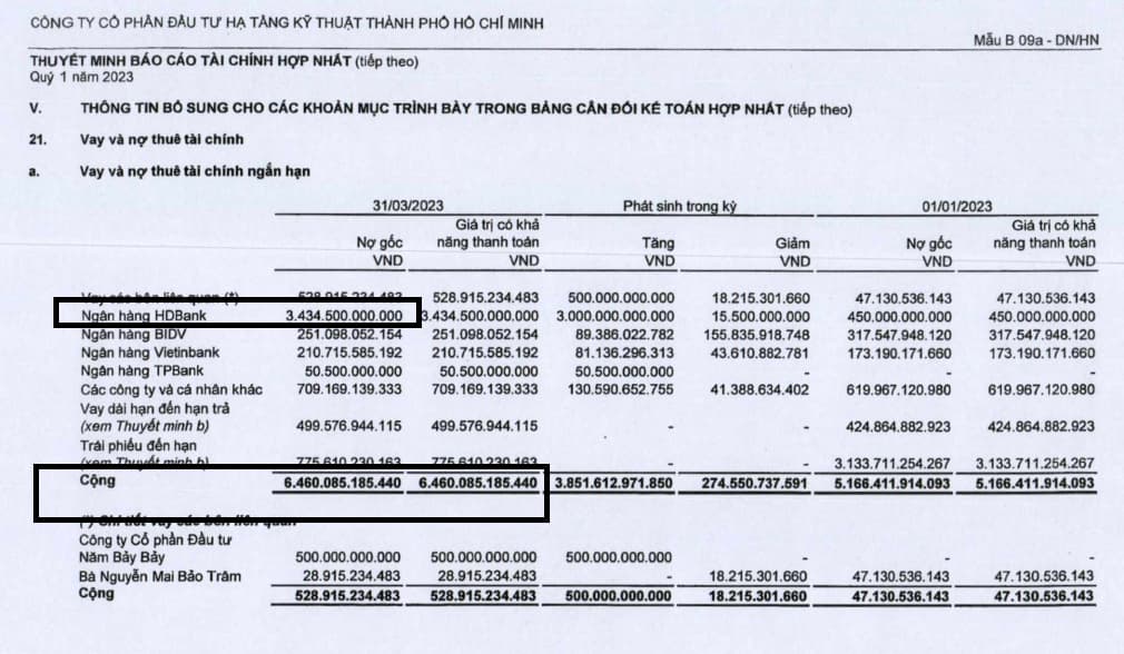 Nhầm chút đó là BCTC 2022, còn quý 1 này vay ngắn hạn tầm 6,4k tỷ chủ nợ lớn nhất HD bank và có tầm 770 tỷ trái phiếu đến hạn