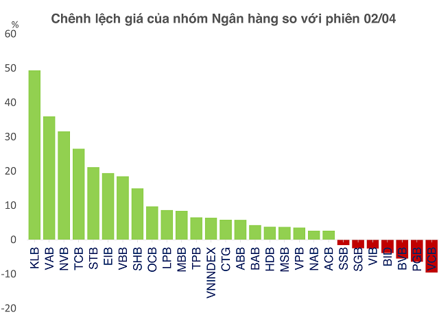 Bên cạnh đó, thành tích giá của nhiều cổ phiếu ngân hàng tư nhân trong giai đoạn này thực sự ấn tượng như NVB tăng 73% từ đầu năm 2025, VAB tăng 63%, KLB và SHB cùng tăng hơn 56%.