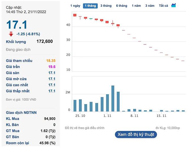 Đáng nói, đây không phải là mức giảm lớn nhất ghi nhận được tại cổ phiếu này nếu so ánh với mức giá cao nhất mà cổ phiếu này từng chạm tới (416.500 đồng - ngày 17/1/2022).