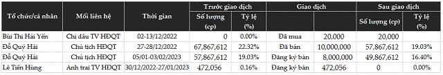 Giao dịch được thực hiện theo phương thức khớp lệnh. Sau giao dịch, ông Hải giảm tỷ lệ sở hữu tại HPX từ 22.32% (67.87 triệu cp) xuống còn 19.03% (57.87 triệu cp).