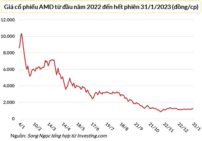 Kết phiên hôm nay 31/1, giá cổ phiếu AMD dừng ở 1.210 đồng/cp, tương ứng với vốn hóa 198 tỷ đồng. Hiện nay, AMD là cổ phiếu duy nhất trong họ FLC vẫn còn được giao dịch.