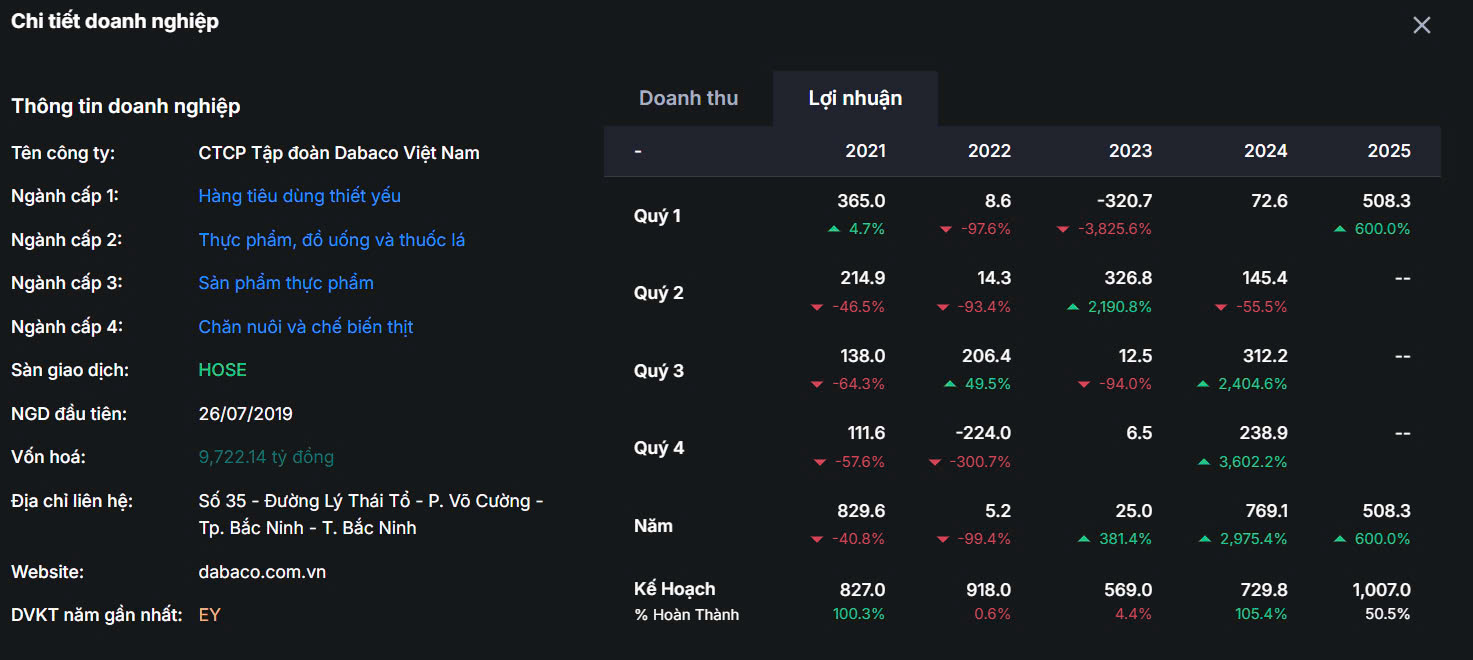 - Q1/2025: LNST đạt 500 tỷ đồng (+6000% YoY), hoàn thành 50% kế hoạch 2025, nhờ giá heo neo cao.