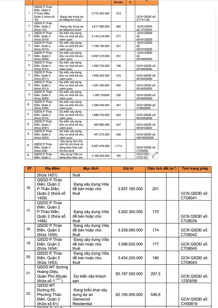 - 22 căn biệt thự Midpoint cho thuê dịch vụ ở Thảo Điền giá gốc khoảng 12 tỷ/căn và hiện tại cũng phải 100 -180tỷ/căn. Riêng 22 căn này hiện tại cũng có tổng giá ước khoảng 1500 tỷ -2000 tỷ> vốn hóa khoảng 5 lần