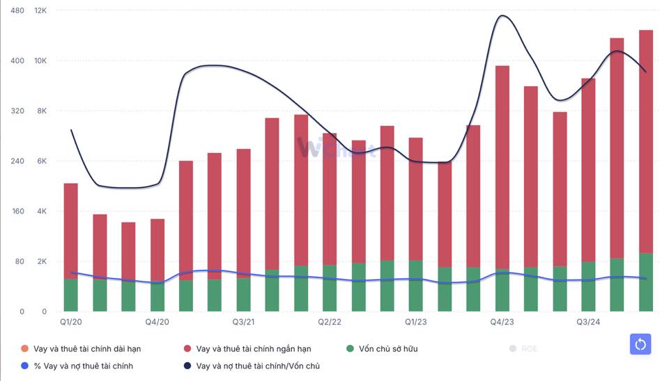 Một điều khá bất ngờ với mình là FRT hiện đang vận hành trong một cơ cấu tài chính áp lực, với nợ vay cao gấp 4 lần vốn chủ, con số mà trong nhiều tình huống của doanh nghiệp khác đã tiệm cận ngưỡng rủi ro. Thế nhưng họ cân đối tỷ lệ nợ vay so với tổng tài sản được giữ ở mức ~50% qua nhiều năm.