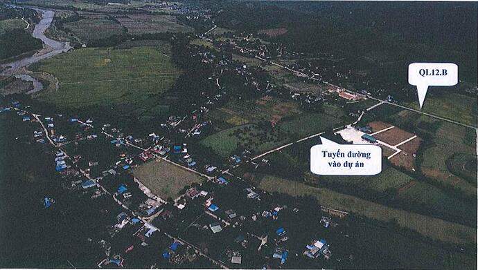 Toàn cảnh vị trí xây dựng đường nối từ quốc lộ 12B vào dự án và cầu vượt sông Bôi. (Ảnh chụp từ ĐTM).