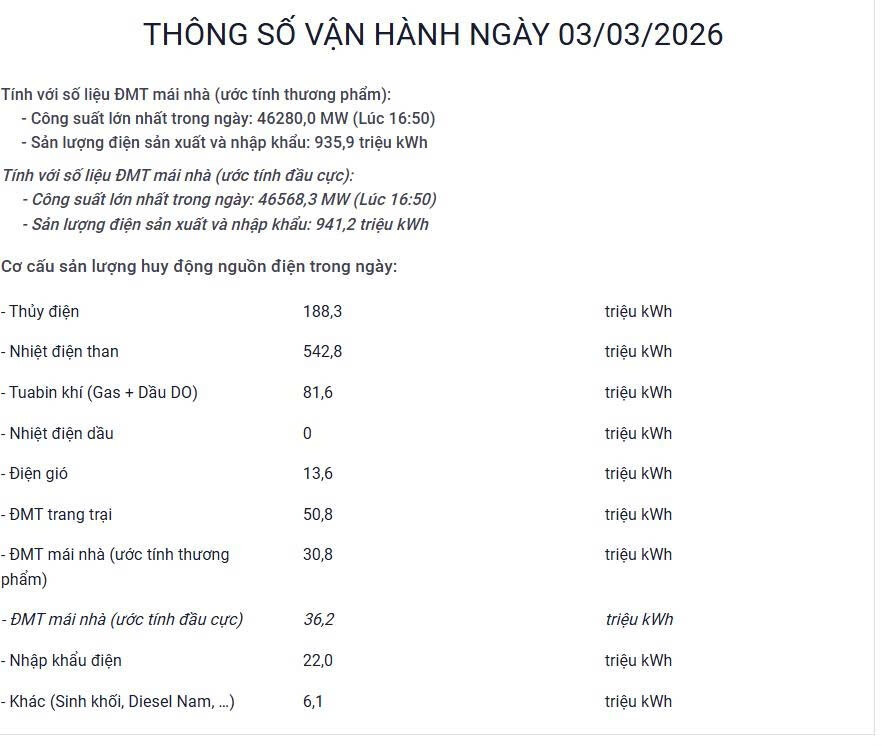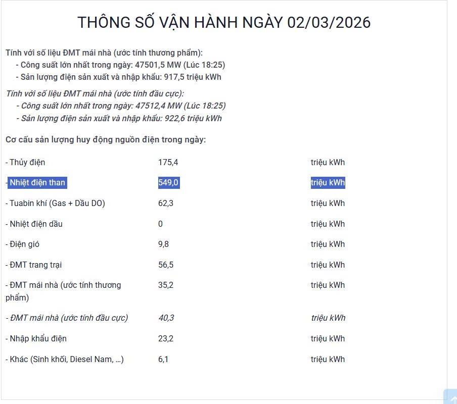 Hiện Elnino đến sớm nguồn điện huy động từ điện than đang đóng vai trò chủ lực. Bất chấp ngày 3-3 miền Bắc có không khí lạnh tràn về nền nhiệt thấp hơn nhưng so với mức huy động đỉnh của ngày 2-3 trước đó cũng không kém là bao nhiêu???