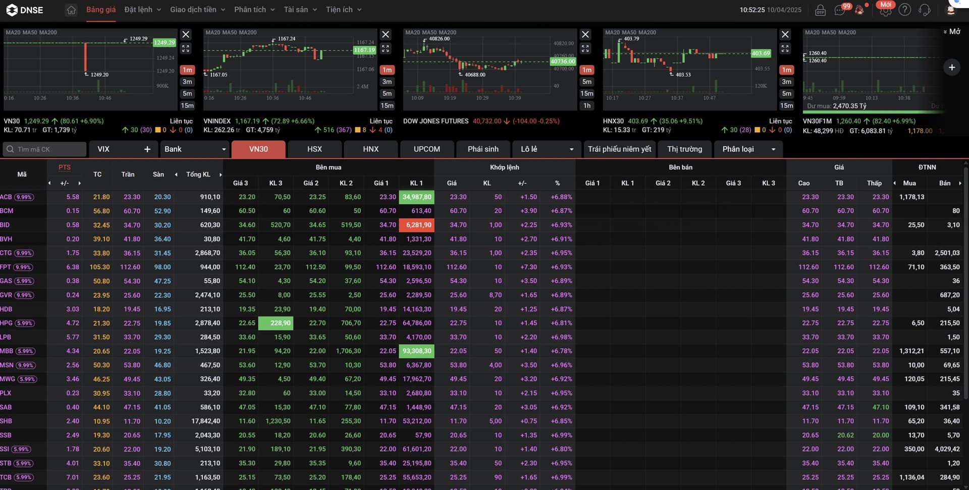 Ngay trong đêm 9/4 theo giờ Việt Nam, sau khi Tổng thống Donald J. Trump tuyên bố hoãn áp thuế 90 ngày đối với tất cả các quốc gia, trừ Trung Quốc, thị trường chứng khoán Việt Nam lập tức quay đầu 180 độ trong phiên giao dịch ngày hôm sau (10/4).