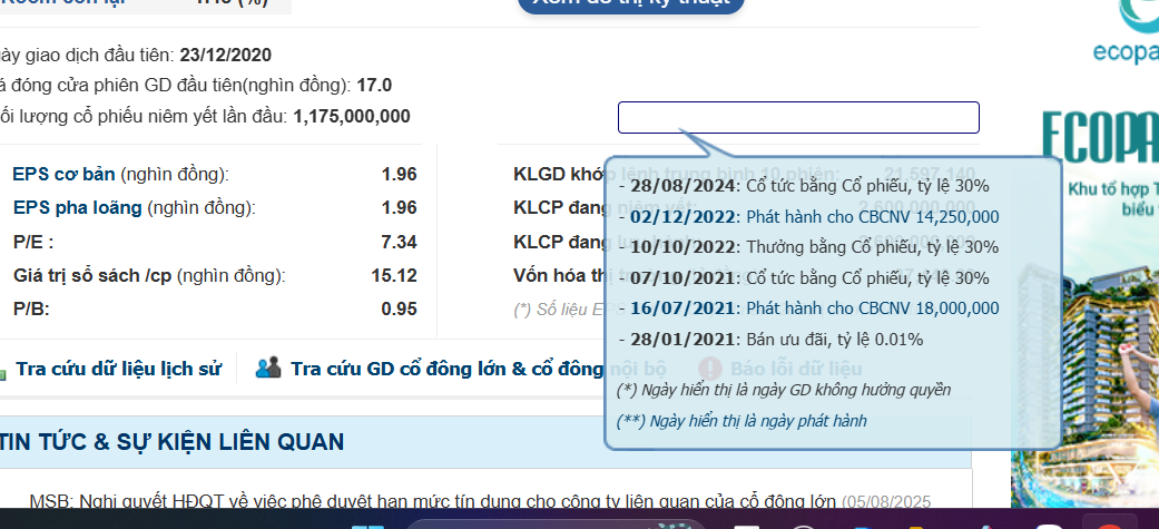 MSB: Cổ tức đều hàng năm 20-30%, giá dưới giá trị sổ sách, hài thật