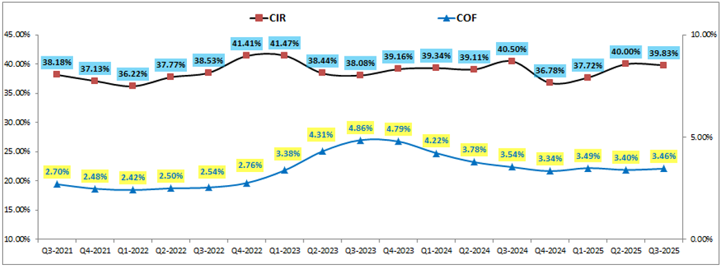Điều này giúp cho MSB hiện vẫn đang kiểm soát khá tốt các chỉ số kinh doanh đầu vào như CIR hay COF. Tuy nhiên hiện xu hướng lãi suất huy động tăng lên trong Q4 có thể sẽ gây áp lực khá lớn lên các chỉ số đầu vào trong các quý tới của MSB. (Hình 4)
