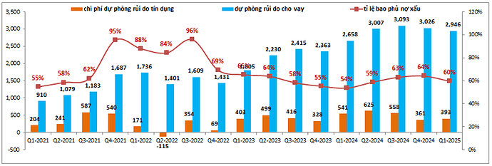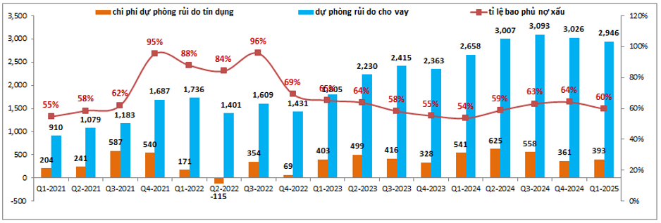 Tuy giảm trích lập nhưng tỉ lệ bao phủ nợ xấu của MSB vẫn duy trì ở mức khoảng 60%, cao hơn giai đoạn 2023 với chỉ khoảng 55%. Điều này là do nợ xấu đang được kiểm soát tốt trong các quý gần đây và với việc sẽ thoái vốn TNEX trong thời gian tới chúng tôi cho rằng khả năng cao MSB sẽ tiếp tục duy trì mức trích lập thấp như 2 quý vừa qua để qua đó hỗ trợ cho kết quả kinh doanh của ngân hàng phục hồi trở lại mà vẫn không làm suy giảm bộ đệm dự phòng.