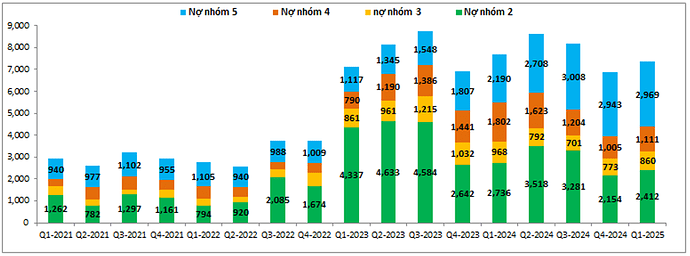 Bóc tách các nhóm nợ của ngân hàng cũng có thể thấy trong khi các nhóm nợ xấu từ nhóm 3 tới nhóm 5 đang được kiểm soát tốt và duy trì đi ngang trong các quý gần đây thì nợ nhóm 2 lại có phần tích cực hơn khi giảm khá nhiều trong 2 quý gần đây và chỉ còn hơn 2,400 tỷ đồng. Cụ thể như hình 6 dưới: