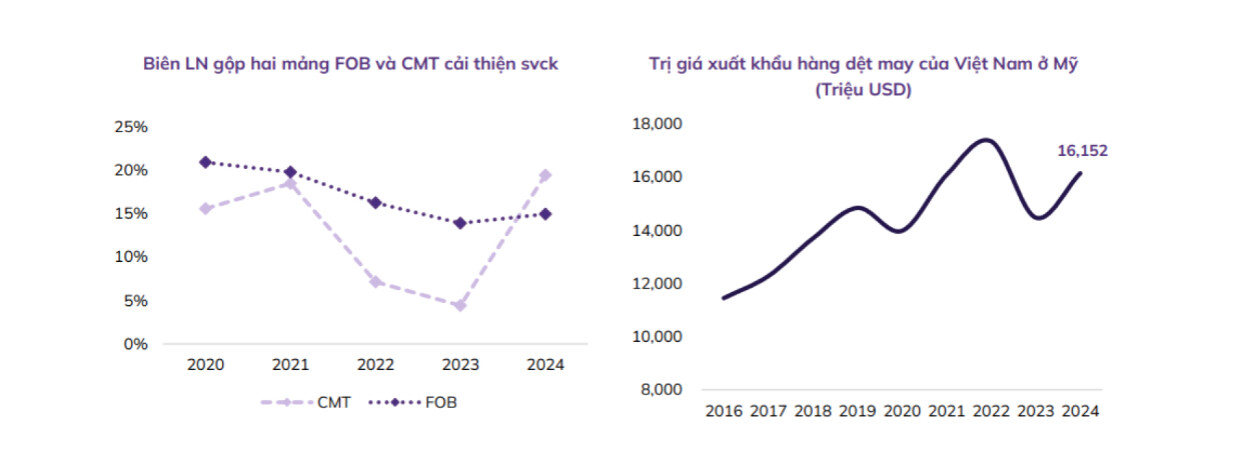 Mặc dù CMT có tỷ suất lợi nhuận cao hơn FOB, nhưng quy mô doanh thu vẫn còn khiêm tốn. Tuy nhiên, với chiến lược mở rộng sản xuất, MSH có thể gia tăng tỷ trọng của mảng này, đặc biệt khi nhiều khách hàng lớn đang có xu hướng chuyển dịch sang mô hình đặt hàng CMT nhằm kiểm soát tốt hơn chất lượng sản phẩm.