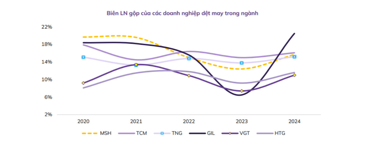 Năm 2024 đánh dấu sự phục hồi mạnh mẽ của MSH sau một năm 2023 đầy thách thức. Báo cáo tài chính cho thấy doanh thu thuần đạt 5.280 tỷ đồng, tăng 16,3% so với cùng kỳ năm trước (svck). Cùng với đó, lợi nhuận trước thuế (LNTT) đạt 541 tỷ đồng, tăng mạnh 76,5% svck, thể hiện sự cải thiện đáng kể về hiệu suất hoạt động của doanh nghiệp. Đáng chú ý, biên lợi nhuận gộp đạt 15,7%, tăng 3,3 điểm phần trăm so với năm 2023, đưa MSH trở thành một trong những doanh nghiệp dệt may có hiệu quả hoạt động cao nhất trong ngành.