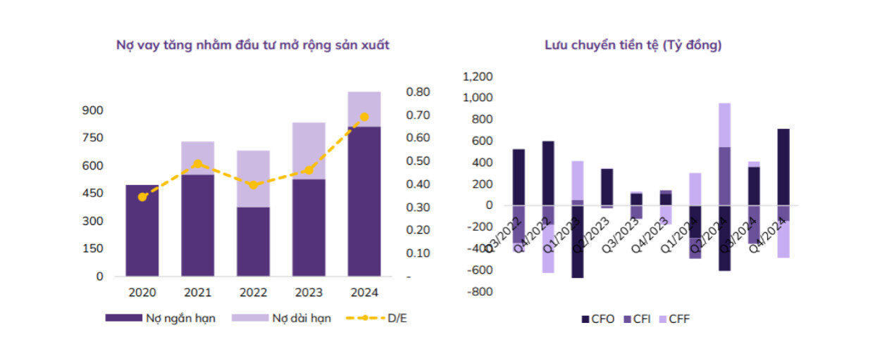 - Vay dài hạn: 607,5 tỷ đồng (+97,3%), chủ yếu để tài trợ cho dự án nhà máy Xuân Trường.