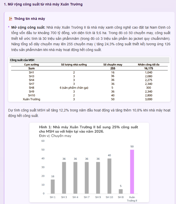 Doanh thu 1.500 Tỷ/Năm: Dự kiến MSH sẽ thu về thêm 1.500 tỷ đồng doanh thu mỗi năm, tương đương tăng 30% so với năm 2024 chỉ riêng từ nhà máy này!