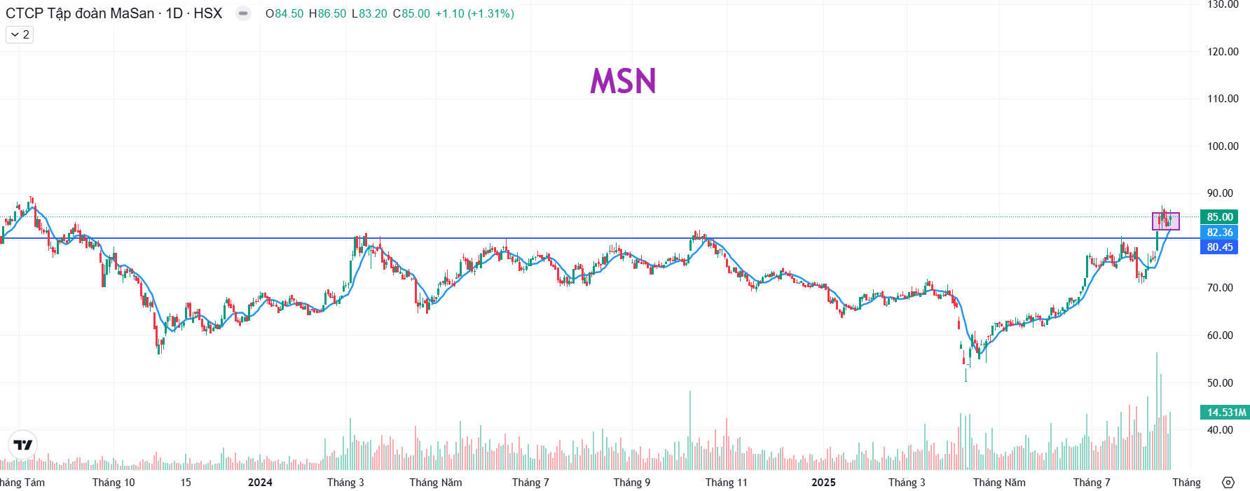 Bên cạnh đó, MSN cũng được kỳ vọng thu hút dòng vốn ngoại khi thị trường chứng khoán Việt Nam được nâng hạng trong thời gian tới. Đặc biệt, MSN đã nâng room ngoại từ 49% lên 100%, có hiệu lực từ ngày 20/6/2025.