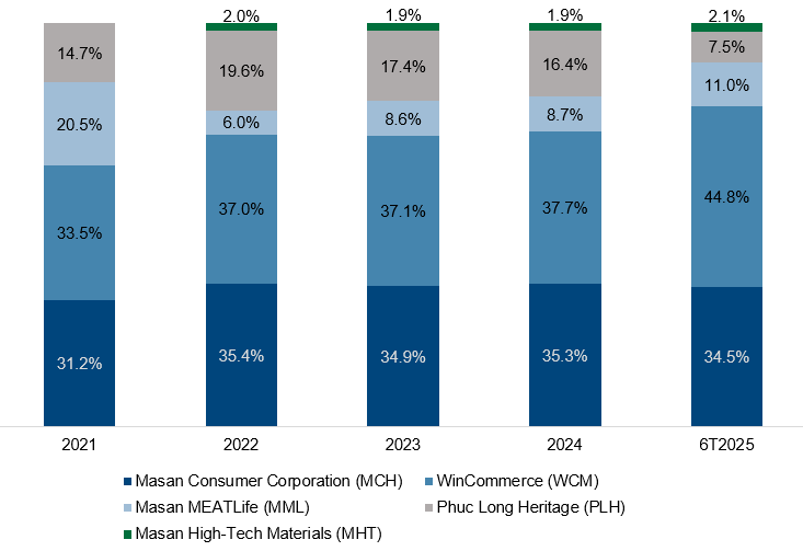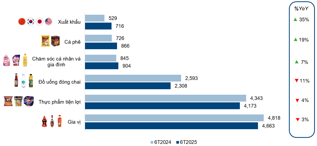 Doanh thu của MCH theo ngành hàng trong 6T2025