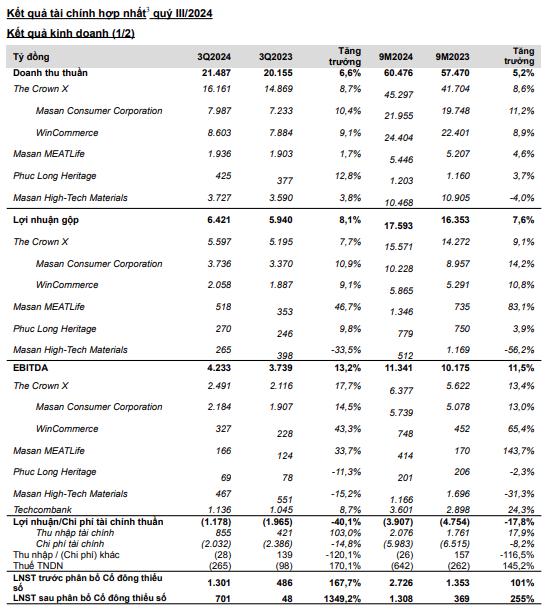 Techcombank (TCB) đóng góp 2.465 tỷ vào EBITDA của MSN trong 1H 2024, tăng 33% yoy.