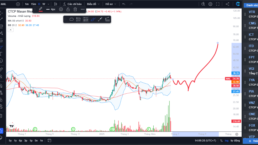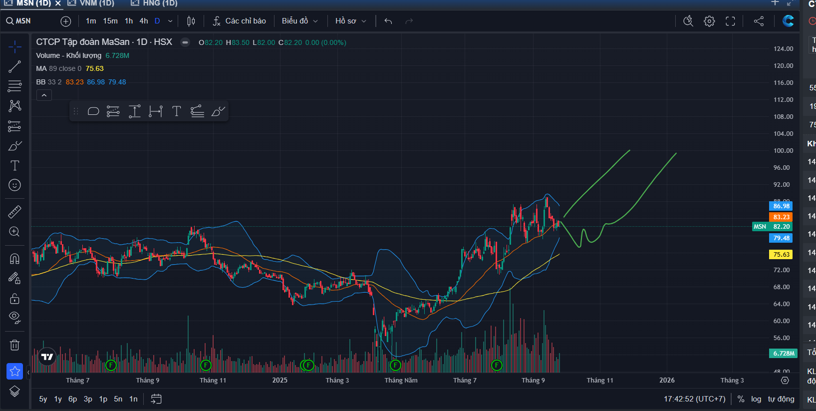 - Áp lực điều chỉnh dễ diễn ra trong ngắn hạn nhằm tạo “wash out” lý do là nhiều broker thời gian qua đã khuyến nghị mã này quanh vùng 16 và đặc biệt nhiều tại vùng 82-87. Vì vậy rất kỳ vọng xu hướng đi ngang sẽ được kết thúc bởi 1 nhịp điều chỉnh của MSN từ 82 hiện tại về quanh 75 trước khi *
