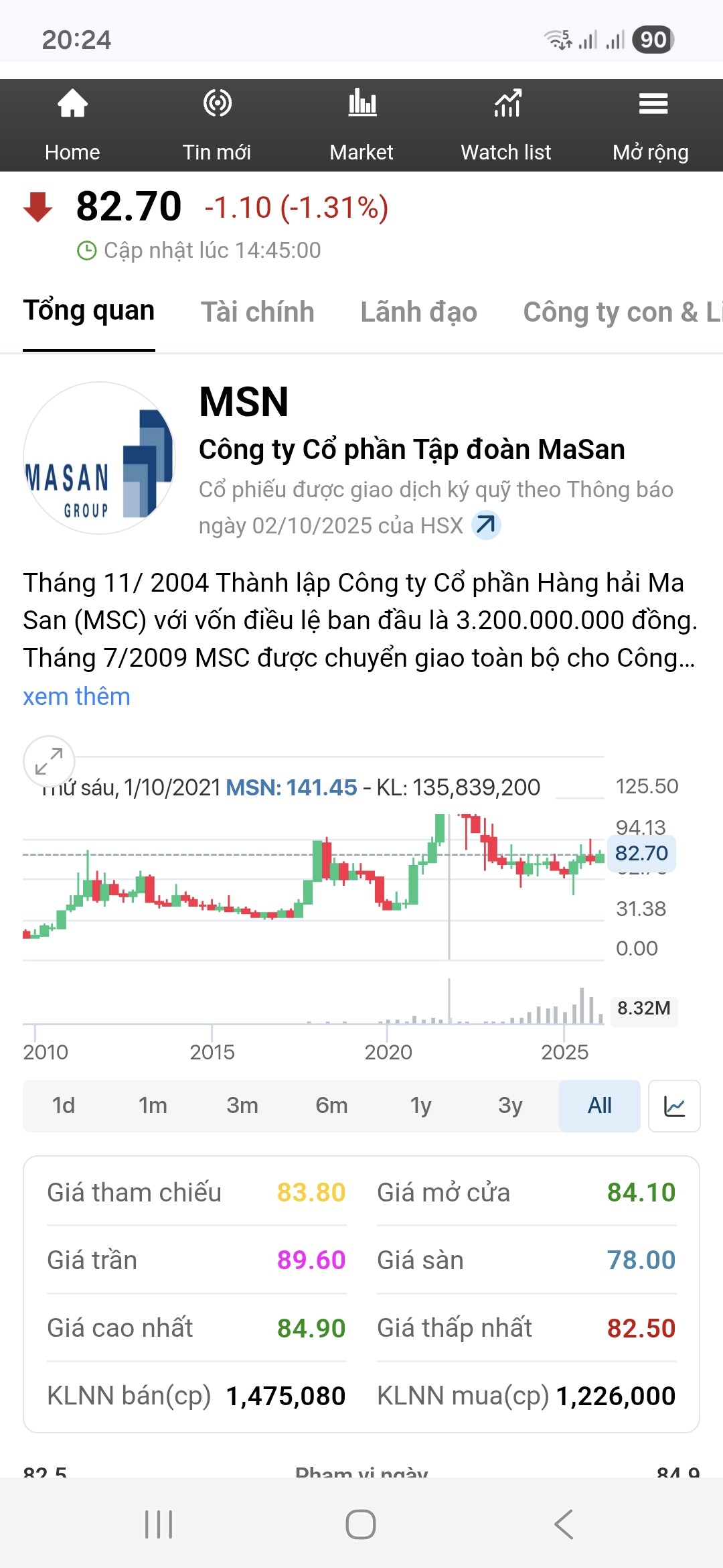 giờ giá cổ phiếu MSN mới 80k múc thoải mái. Riêng MSN càng giảm càng mua.