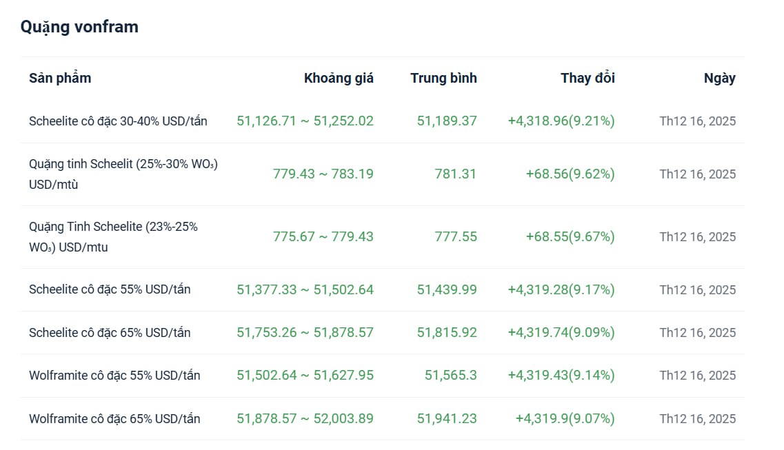 Giá vonfram sẽ tiếp cận mốc 1.000$ sớm thôi