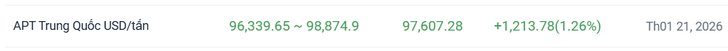 Ngày nay, thị trường vonfram tiếp tục bị chi phối bởi đà tăng. Một số doanh nghiệp vonfram ở Giang Tây đã công bố giá hợp đồng dài hạn cho nửa cuối tháng Một. Một doanh nghiệp ở Chongyi đã tăng giá hợp đồng dài hạn cho phía quặng lên 63.000 nhân dân tệ/mtu cho 55% vonfram đen cô đặc, thực hiện ở mức 523.000 nhân dân tệ/mtu; APT được tăng từ 90.000 nhân dân tệ/t MoM lên 760.000 nhân dân tệ/mt. Một doanh nghiệp vonfram khác ở Giang Tây đã tăng giá quặng vonfram đen hạng nhất tiêu chuẩn quốc gia lên 56.000 nhân dân tệ/mtu MoM lên 511.000 nhân dân tệ/mtu. Sự gia tăng đáng kể giá hợp đồng dài hạn trong nửa cuối tháng đã thúc đẩy tâm lý tăng giá của thị trường. Vào buổi chiều, báo giá đặt hàng giao ngay cho quặng trong nước và APT và các sản phẩm thượng nguồn khác cho thấy một sự gia tăng mạnh mẽ khác.