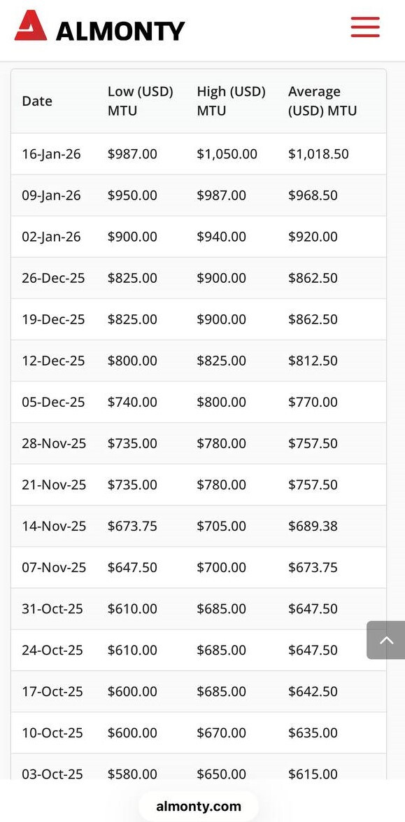 Trong thị trường phế liệu vonfram, báo giá chính thống ở Ấn Độ tiếp tục tăng hàng tuần, với giá FOB Ấn Độ hiện tại cho phế liệu cacbua xi măng (W 90-92%) được báo cáo là 92-95 đô la/kg. Theo phản hồi từ các khách hàng hạ nguồn, giá nguyên liệu vonfram địa phương tăng gần gấp đôi hàng tuần, dẫn đến áp lực chi phí đáng kể cho người dùng cuối. Ở châu Âu, các nguồn phế liệu hiện đang phụ thuộc nhiều hơn vào các thương nhân địa phương, với một số thương nhân châu Âu tuyên bố rằng giá cả và điều khoản thanh toán đối với phế liệu Ấn Độ rất khó chấp nhận, dẫn đến nhập khẩu hạn chế. Giá hiện tại cho phế liệu cacbua xi măng địa phương của Châu Âu (W 90%) là khoảng 70 euro/kg (khoảng 82 đô la/kg), và dự kiến sẽ tăng giá hơn nữa trong tuần này.