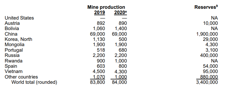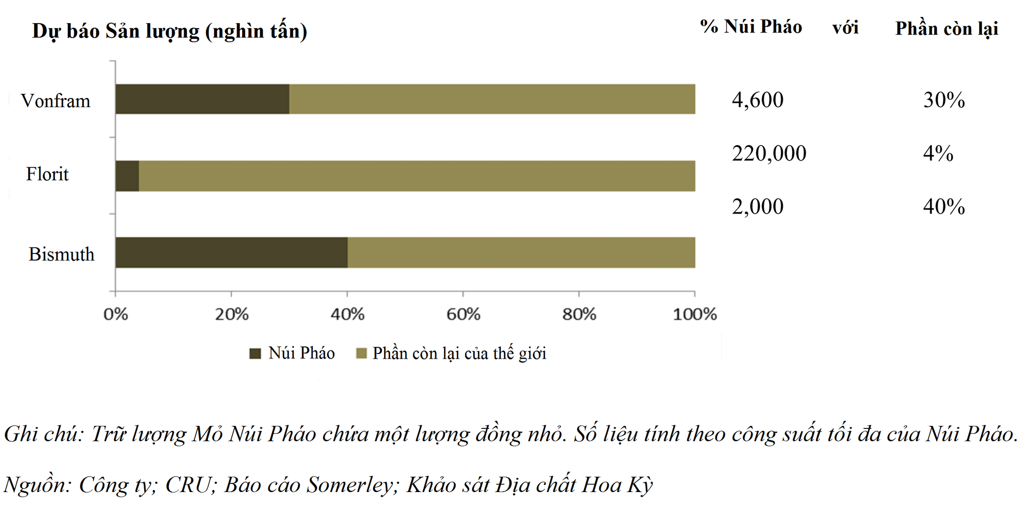 Đáng chú ý, trong những năm gần đây, sản lượng vonfram từ mỏ Núi Pháo ở Thái Nguyên chiếm khoảng 33% sản lượng vonfram toàn cầu nếu không tính nguồn cung từ Trung Quốc, có quy mô lớn thứ 2 thế giới.