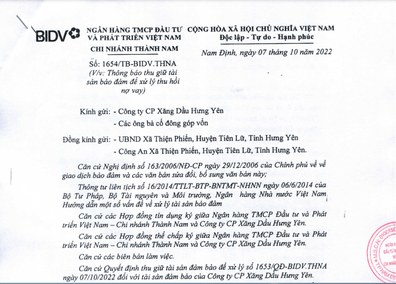 Mst đầu tư vào cty xăng dầu Hưng Yên bao tiền hả bác. Và cty đó lấy tài sản nào để đi thế chapa vay vốn và vay bao nhiêu bác có biết không