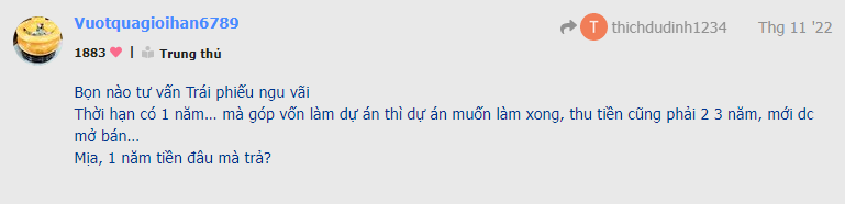 Đấy là cả năm, hoàn thành 33% kế hoạch của năm, ông bảo quí 4 cơ mà, rồi quí 4 lãi bao nhiêu. Quí 4 ông bảo nát người, đâu đâu, nát thật, quí 4 lãi có 4 tỷ. Trước đó thì kêu quí 4 này ghi nhận doanh thu rồi bán dự án các kiểu, cuối cùng doanh thu ghi nhận mà k có lãi, à quên lãi 4 tỷ haha. Nhiều quá. Lươn quá, bô bô cái miệng kêu quí 4 lãi khủng, lại còn tính giá bao nhiêu 1 căn. Cuối cùng lại bảo cả năm. Lươn