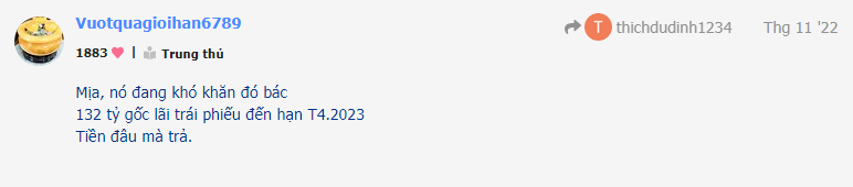 Thông tin đâu mà ông bảo tuần sau, ông khẳng định chắc cú vậy cơ mà. Ông muốn xả hàng thì dăm ba cái chiêu lừa đảo này nhằm nhò gì. Chính ông còn khẳng định bán hàng cho nhỏ lẻ, tôi chụp màn hình ở trên rồi đấy. Rồi ông bảo ra tin thì nát người. Rồi tin đâu, à chắc là tin lợi nhuận bèo bọt. Vậy mà hô lợi nhuận khủng. Trong cái bài này, ông lúc hô, lúc dìm, vậy tôi hỏi ông đúng chỗ nào. Nào mua hàng thì ông dìm, bán thì ông hô. Ông giải thích tại sao ông bảo tuần sau mà năm sau k ra tin đi. Ông giải thích cái tin ông ra sẽ nát người đi, rồi tin đâu. Ông giải thích ông vừa hô vừa dìm đi. Ông bảo ông xả hàng hết cho nhỏ lẻ rồi, vậy ông là lái hay là gì. Giải thích đi