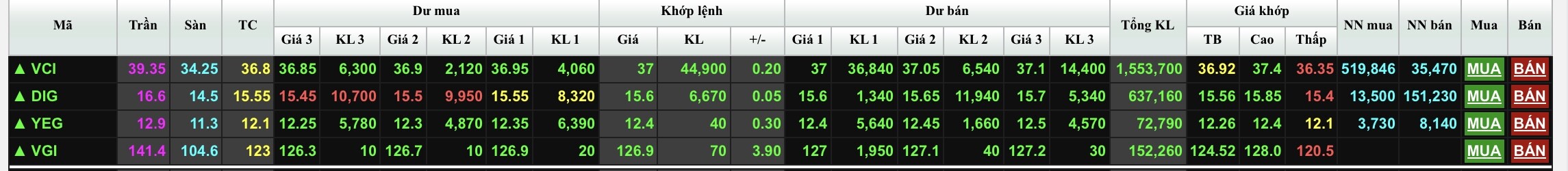 nay ngoại mua ròng mạnh nhất TT (cho tới thời điểm này) các mã sau, có FPT của @Songda , VCI của Vam, DBC của @mr_le198x