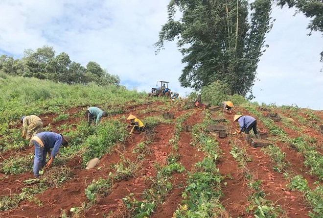 Nông dân huyện Tuy Đức (Đắk Nông) thu hoạch khoai lang. Ảnh: Phan Tuấn