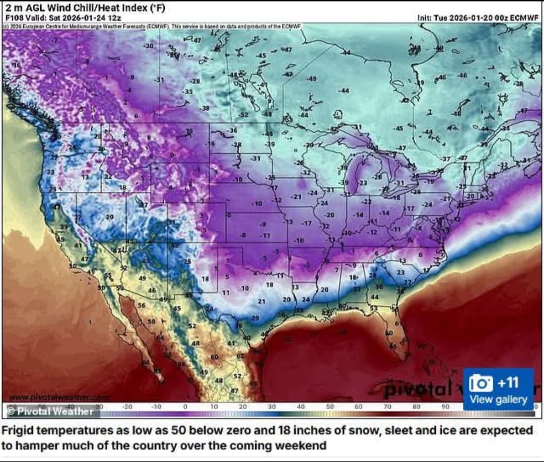 Nhiệt độ cực thấp, xuống tới -50 độ C, cùng với lượng tuyết, mưa đá và băng dày đến 45 cm dự kiến sẽ gây khó khăn cho phần lớn đất nước.