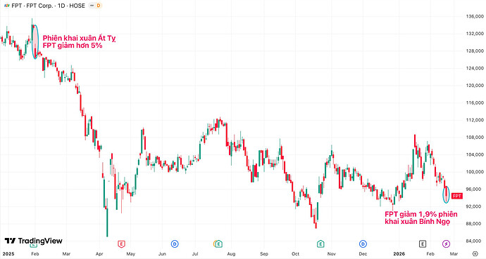 2 phiên khai xuân Bính Ngọ 2026 và Ất Tỵ 2025 đều mang đến nỗi buồn cho cổ đông FPT. Một phần nguyên nhân có thể đến từ AI.