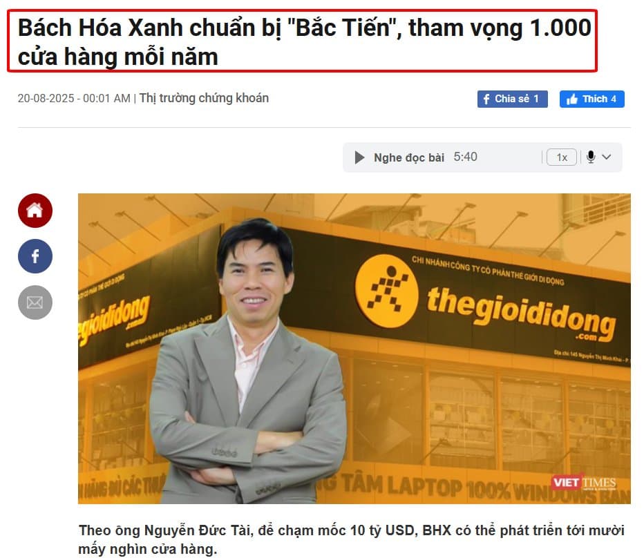 Điều này cho thấy mức độ tự tin rất lớn của doanh nghiệp vào khả năng sinh lời của từng cửa hàng mới – điều chỉ có thể xảy ra khi công thức vận hành đã được chuẩn hóa. Chuỗi Bách Hóa Xanh, đạt doanh thu lũy kế 6 tháng đạt gần 22.600 tỷ đồng, tăng hơn 16% so với cùng kỳ năm ngoái.