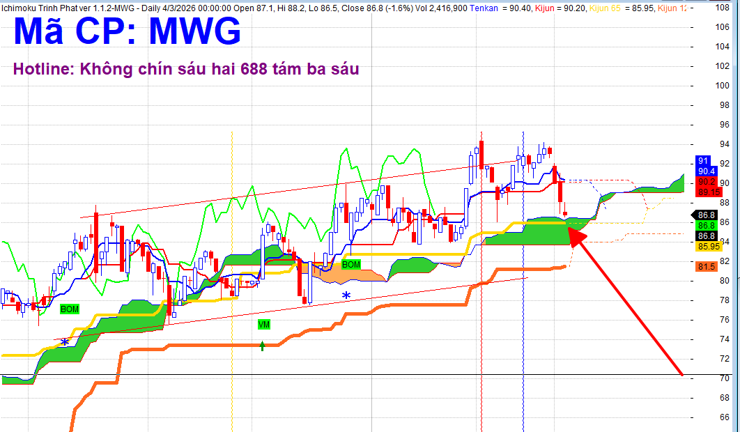 Với nhà đầu tư ngắn hạn MWG: tại 85.8-86.5 ( giá hiện tại 87 - đợi chiều nay phiên hàng lớn về khả năng sẽ có giá khớp)