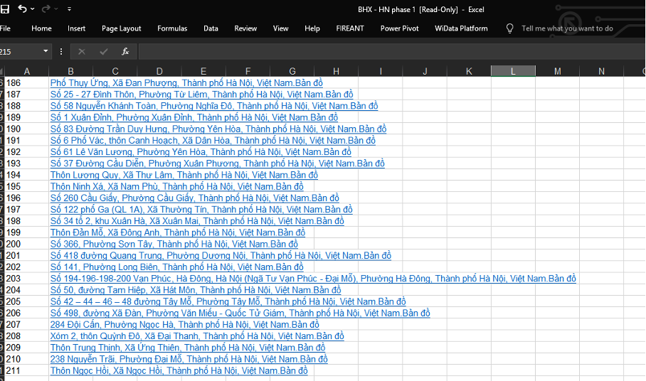 Danh sách dự kiến cửa hàng Bách Hoá Xanh - Hà Nội