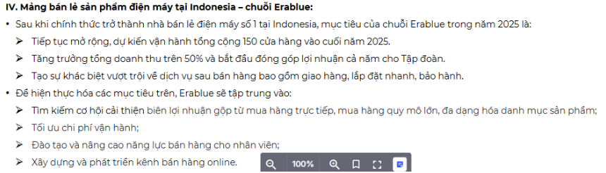 Chuỗi Erablue đã có lãi ở cấp công ty, dự kiến 2025 sẽ có lãi ở cấp tập đoàn với chiến lược khác biệt trên đất bạn. Việc mở rộng mô hình sau khi có lãi sẽ đem lại nguồn doanh thu đáng kể cho chuỗi này.