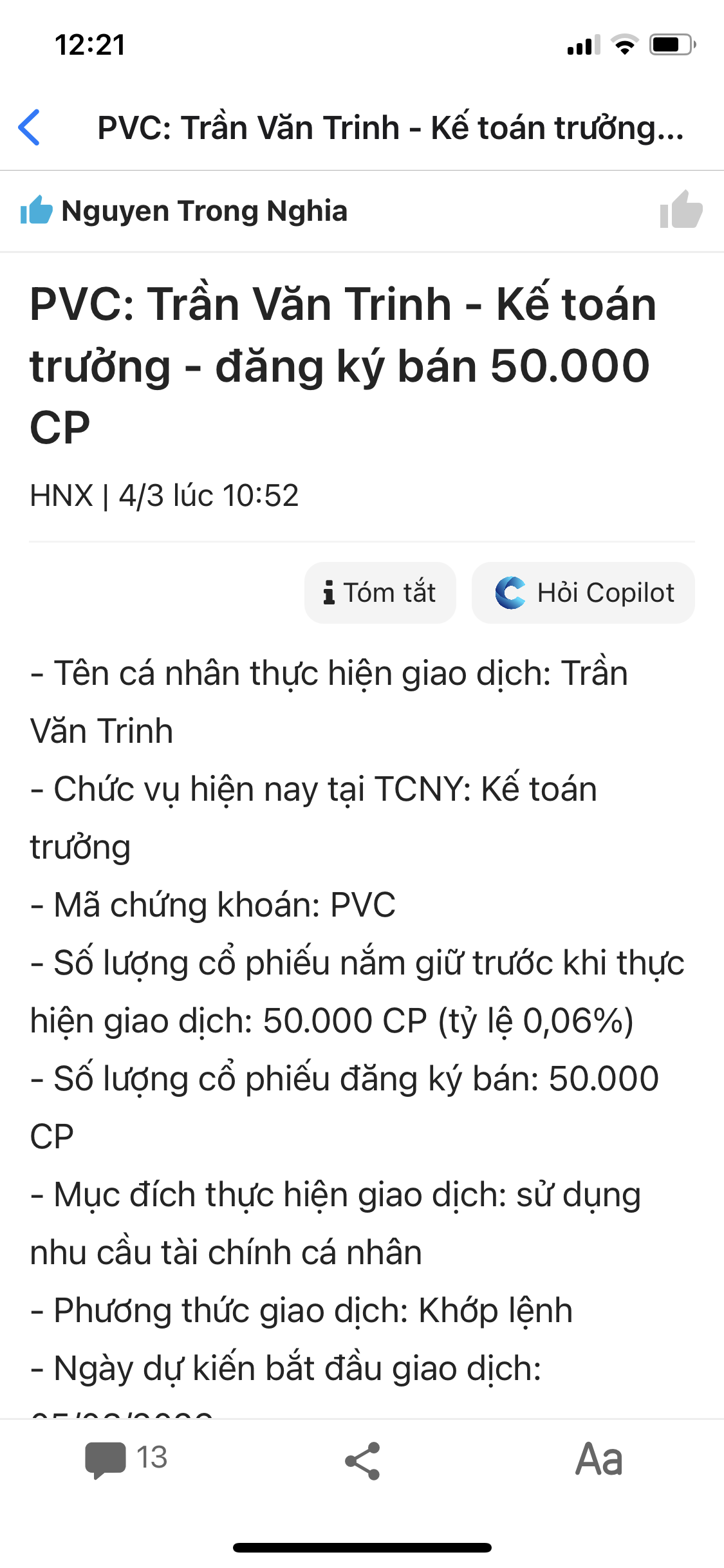 Chủ Tịch và ban lãnh đạo các công ty dầu khí N.GU quá tranh thủ bán ra. Chỉ có nhỏ lẻ khôn hết phần thiên hạ vẫn đang hô hào người dưng vào FOMO đu đỉnh khi mà giá cổ đều đã x2 x3 trong thời gian ngắn