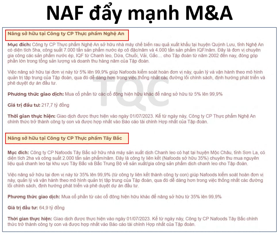 Mở rộng quy mô: Trong nhiều năm qua NAF liên tục mở rộng quy mô bằng việc chi rất nhiều tiền để thâu tóm thêm các doanh nghiệp cùng lĩnh vực để hoàn thiện hệ sinh thái. Ngoài ra, NAF đang liên tục mở rộng vùng trồng với mục tiêu 30.000 ha vào 2028.