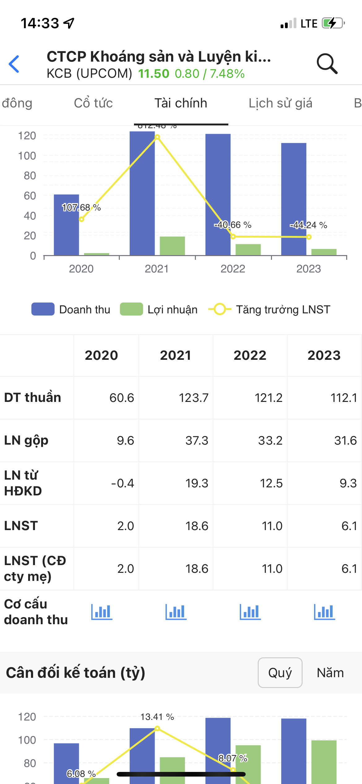 https://static2.vietstock.vn/data/UPCOM/2015/BAN%20CAO%20BACH/VN/KCBBancaobach_CBTT2015(DC).pdf - Điểm cuối cùng: KCB mỗi năm đang đều có doanh thu tầm 120 tỷ, lợi nhuận đều đặn tầm 10 tỷ/năm, trong bối cảnh chưa khai thác tổng lực các mỏ thiếc, sắt (vì DN vẫn đang trong đoạn xin cấp phép). Năm ngoái chia cổ tức 5% bằng tiền. Nghị quyết đại hội 2024 cũng ấn định chia cổ tức 2024 không thấp hơn 5% (tầm tháng 6-2025 sẽ chốt chia cổ tức như thông lệ).