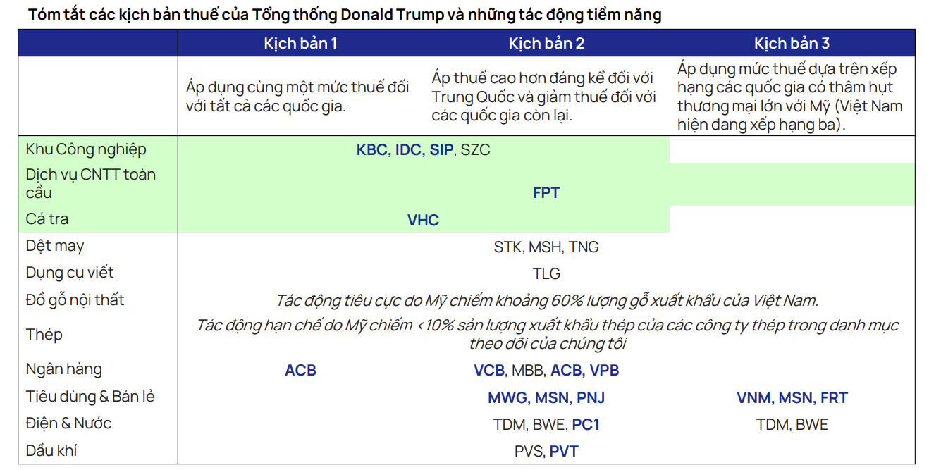 4. Danh Mục Cổ Phiếu Theo Dõi với 3 kịch bản áp thuế của Ông Trump