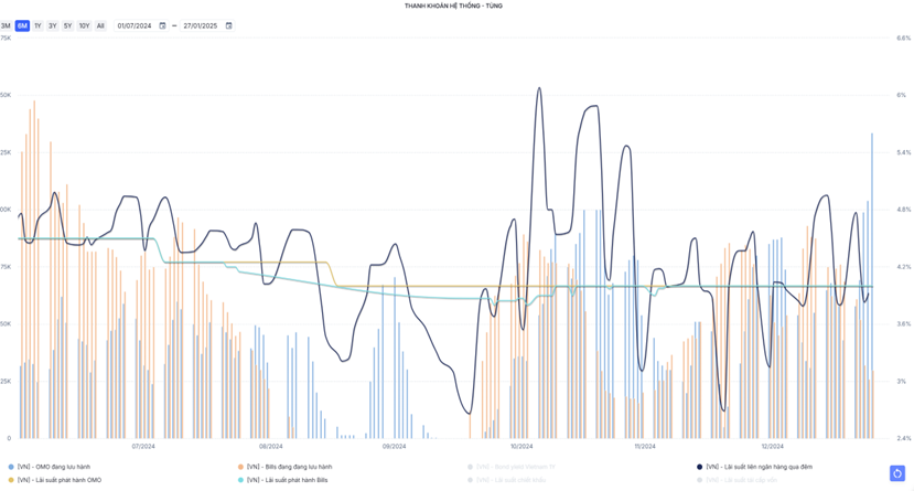 → Áp lực tỷ giá trong Quý I/2025 đang được giải quyết với hành động trên của SBV duy trì lập trường không hy sinh tỷ giá. Áp lực thanh khoản hệ thống thiếu tiền vẫn còn và đang điều hành phù hợp đến khi tiền gửi quay lại hệ thống sau Tết